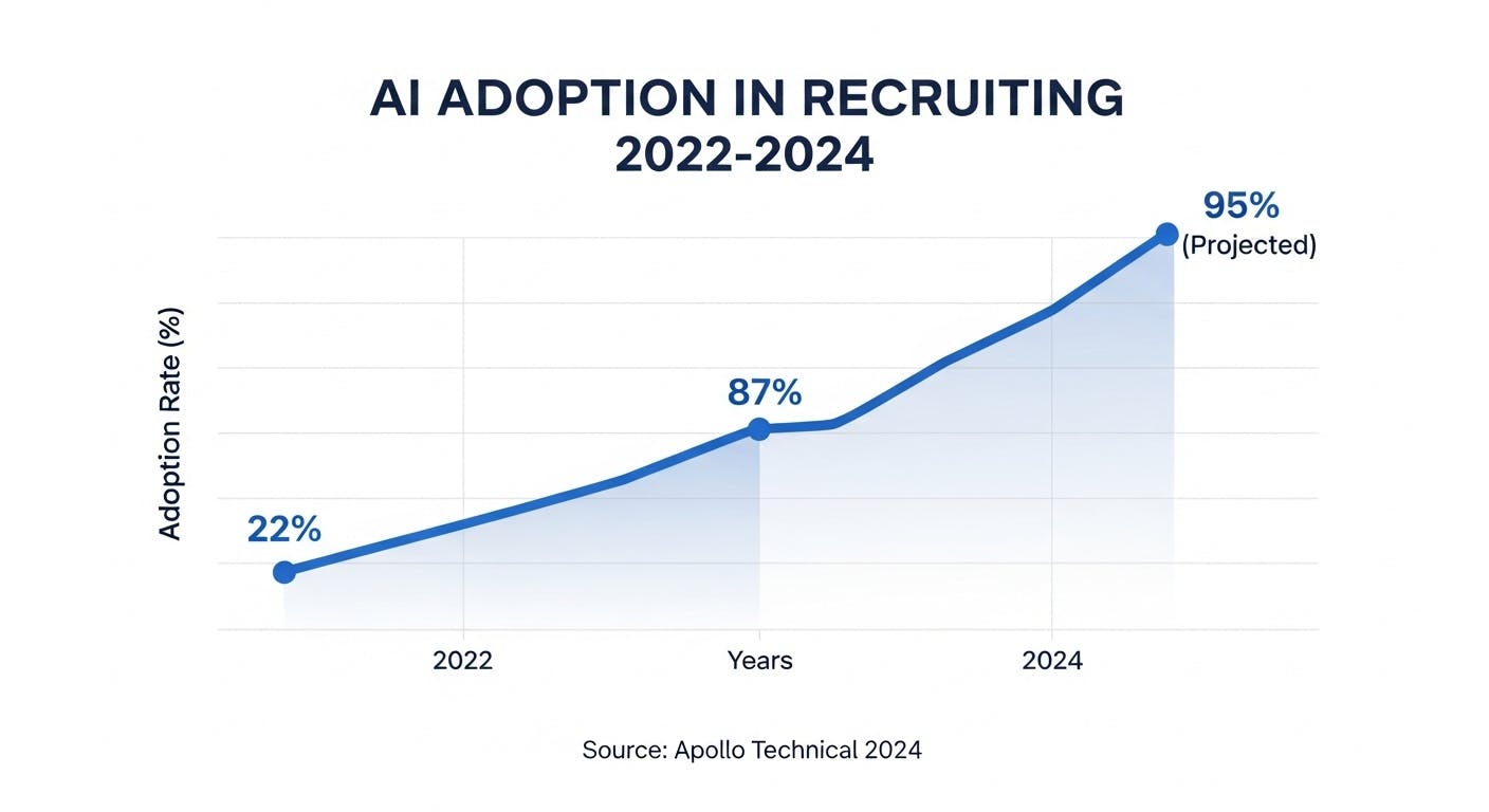 If you're wondering whether AI in the recruiting world is just hype, the numbers tell a different story. According to Apollo Technical, 87% of companies are already using AI-driven recruiting tools in some capacity. This isn't future speculation - it's happening right now.